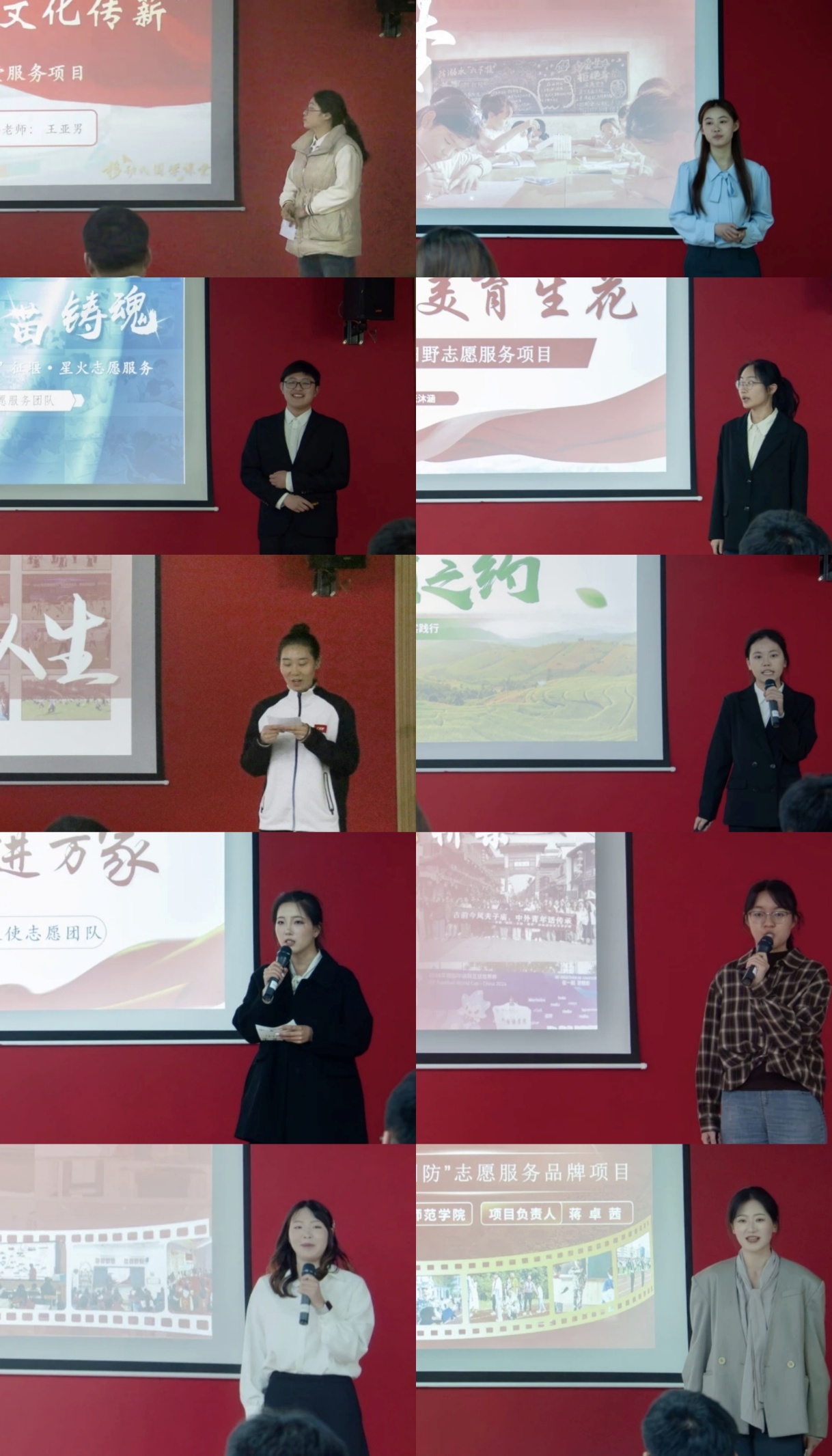 19位优秀青年志愿者依次登台展示个人风采,讲述自己在教育帮扶、大型赛会保障、生态环保、社区服务等多个志愿服务领域的奉献历程与暖心故事,生动呈现了他们在志愿服务中的点滴经历与成长感悟。充分展现了我校青年学子投身公益事业、主动服务社会的青春风貌与责任担当。